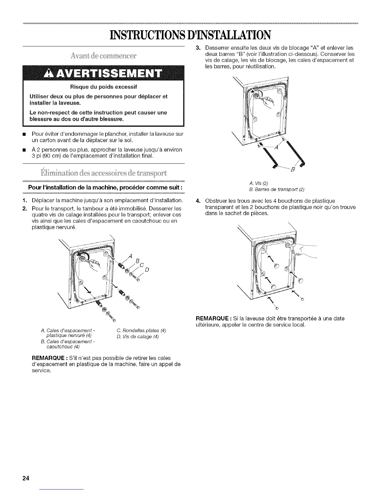REMARQUE : Si la laveuse dolt _tre transportee a une date