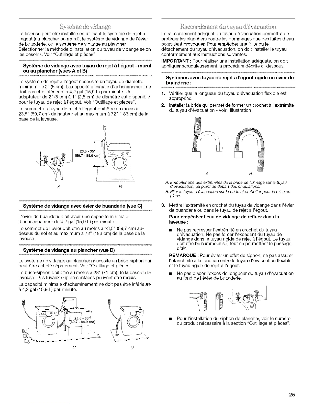 La laveuse peut _tre installee en utilisant le syst_me de rejet