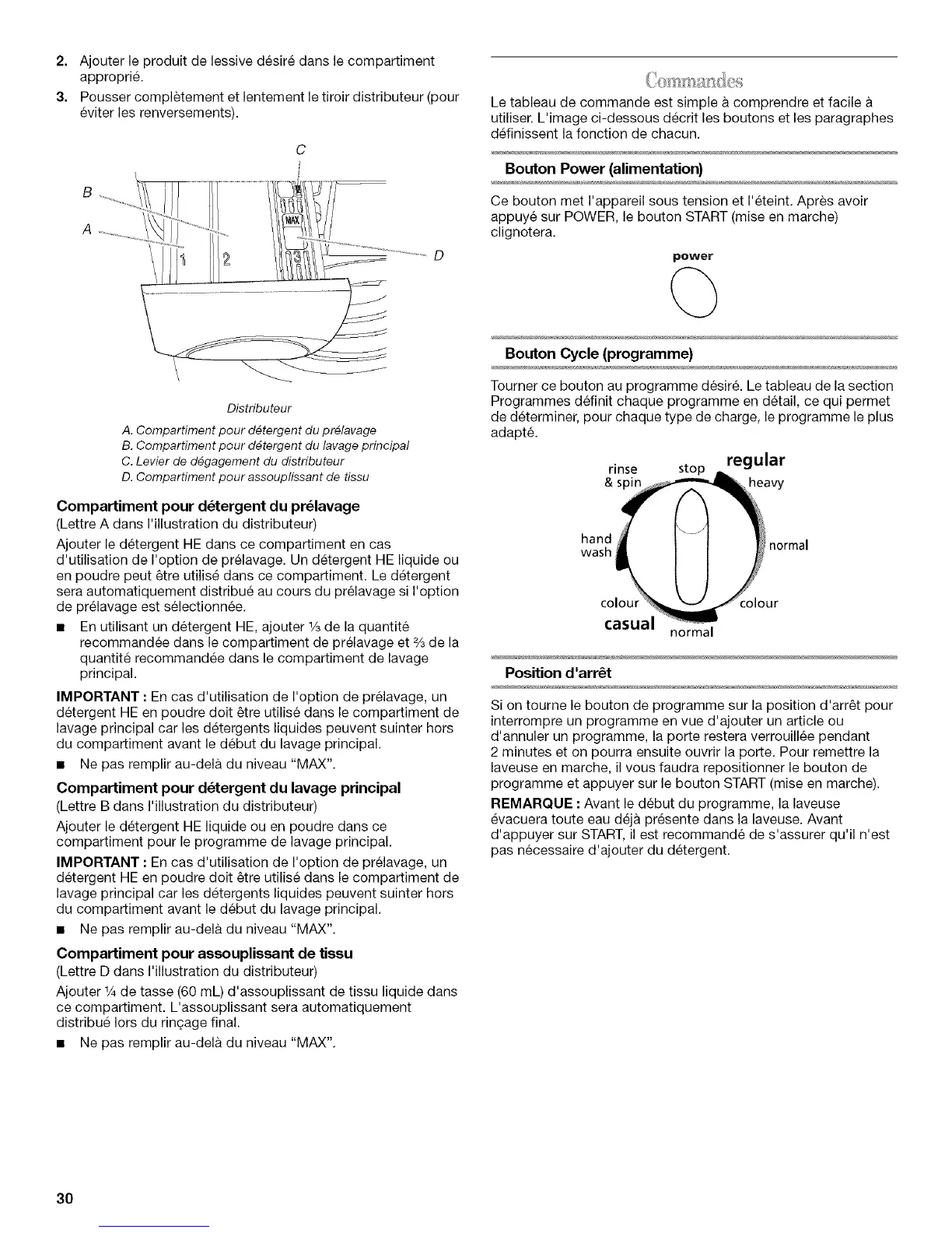 detergent HE en poudre dolt _tre utilise darts le compartiment de
