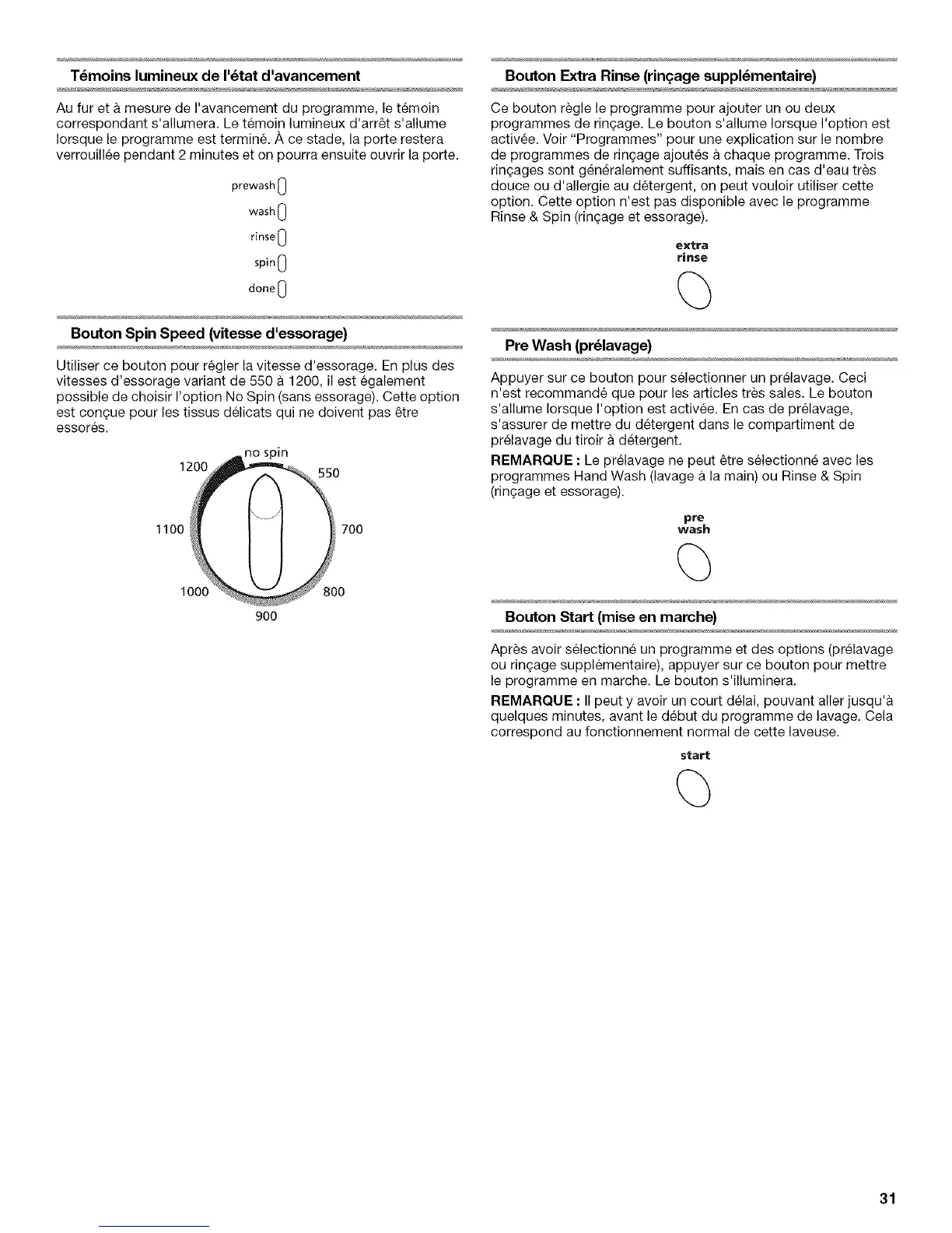 REMARQUE : Le prelavage ne peut _tre selectionne avec les
