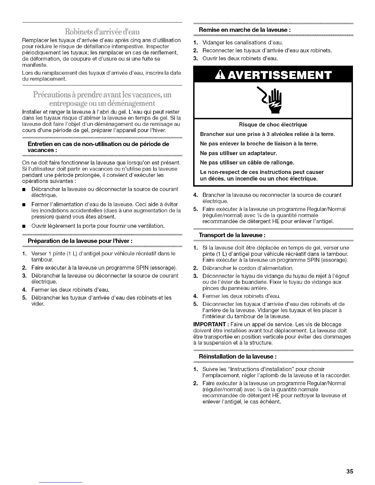 1. Si la laveuse dolt _tre deplacee en temps de gel, verser une