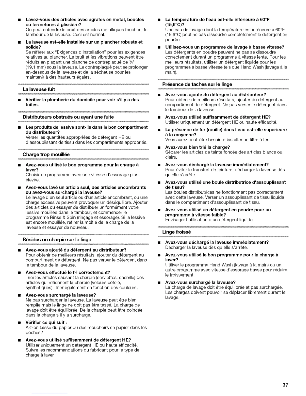 Ne pas surcharger la laveuse. La laveuse peut _tre bien
