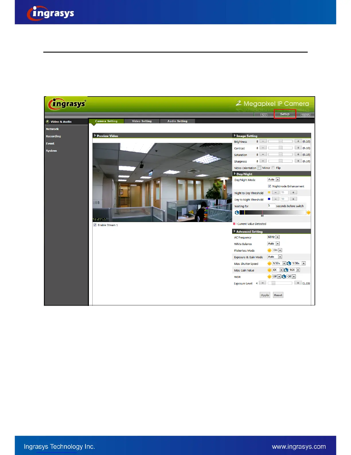 Ingrasys N3211E - Video & Audio Settings; Camera Settings Overview