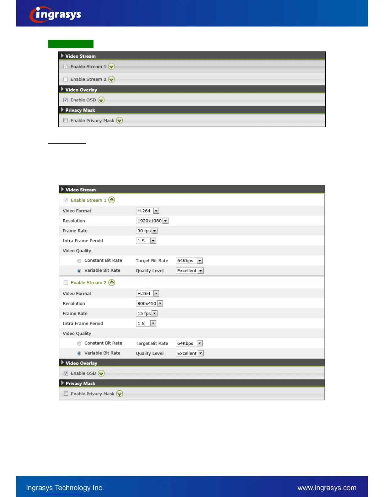 Ingrasys N3211E - Video & Audio Settings; Video Stream Configuration Details
