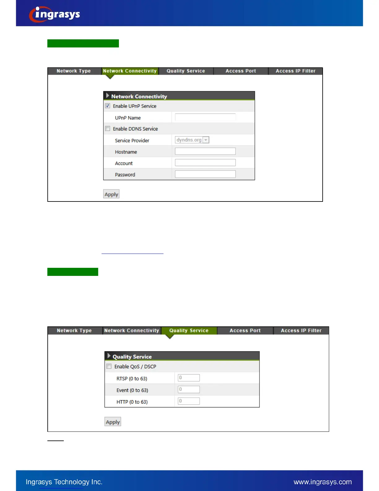 This page provides the connectivity configuration, so that IP camera can be accessed without necessarily