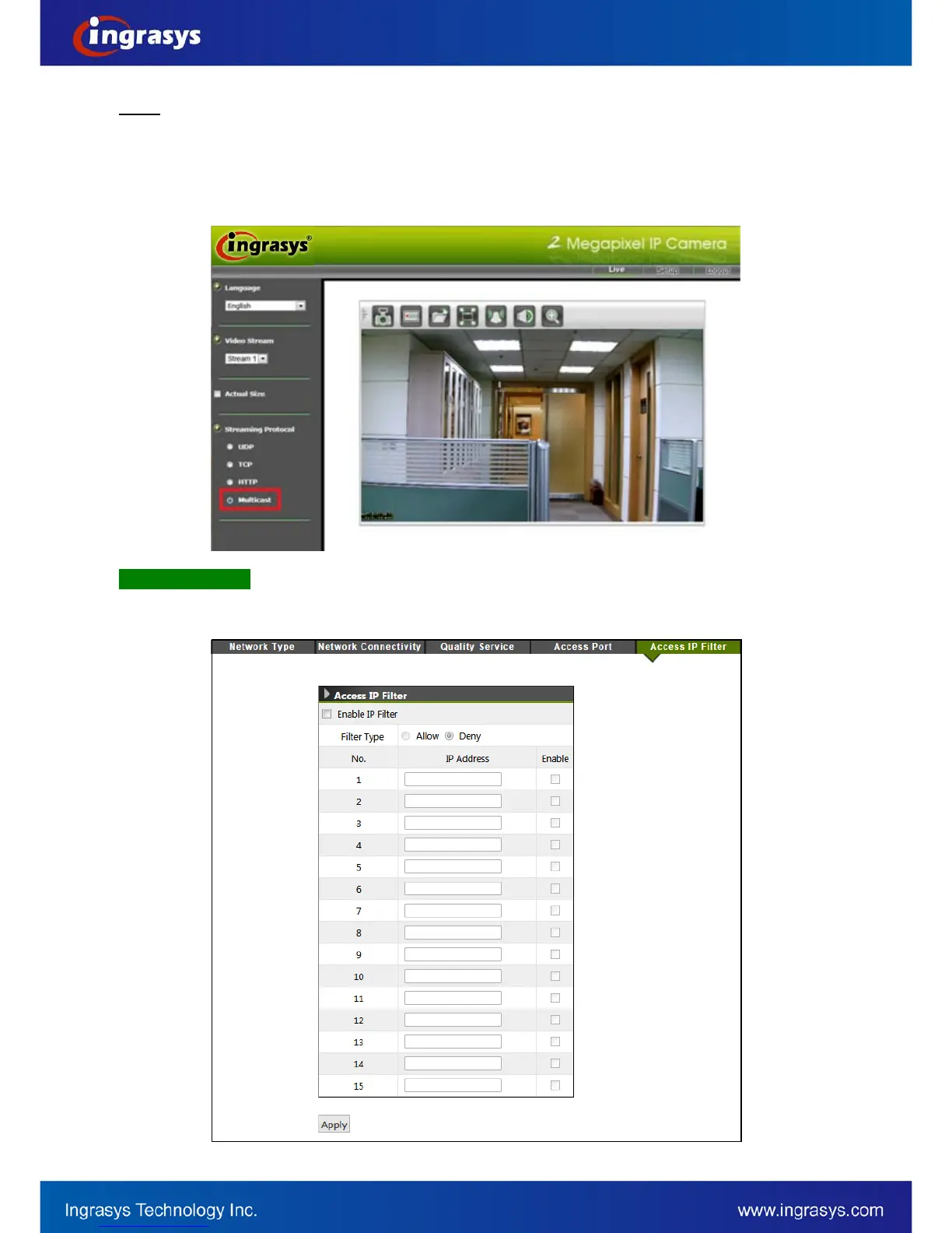 choose “Allow / Deny” of the listed IP addresses. Up to 15 IP addrss can be added in the list.