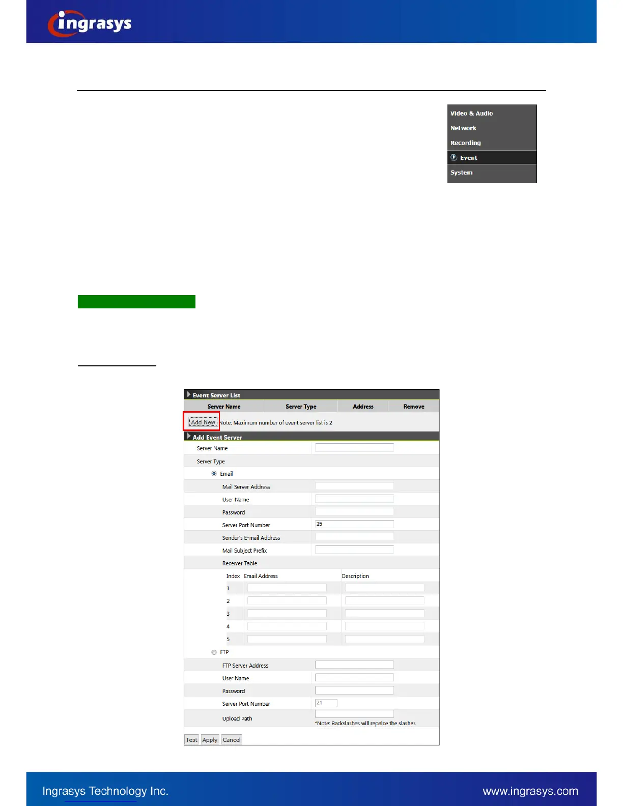 Click on “Add New” button to add the remote severs. These are email recipients and FTP server.