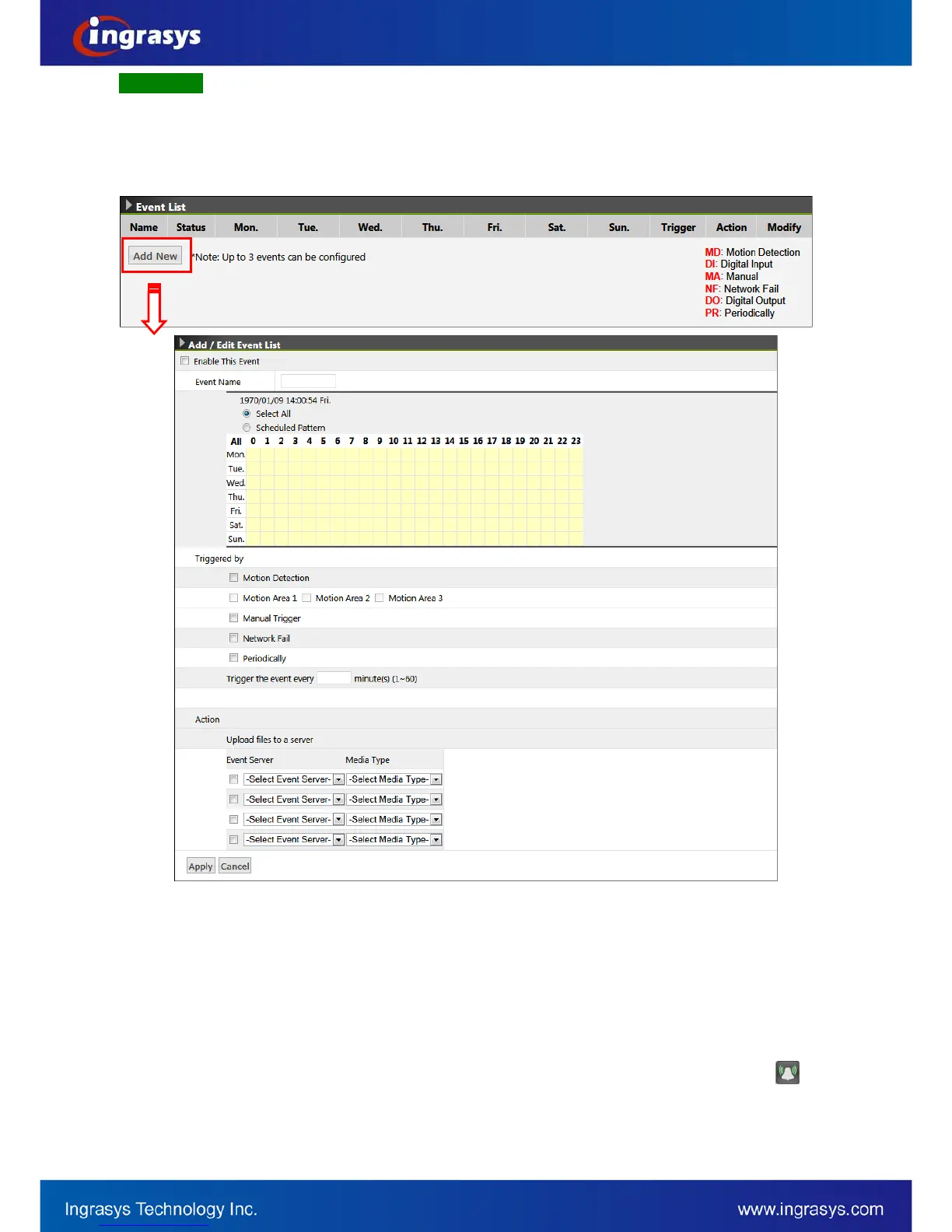 Event Name: Enter an event name, e.g. Motion Detection, to identify this configured event.