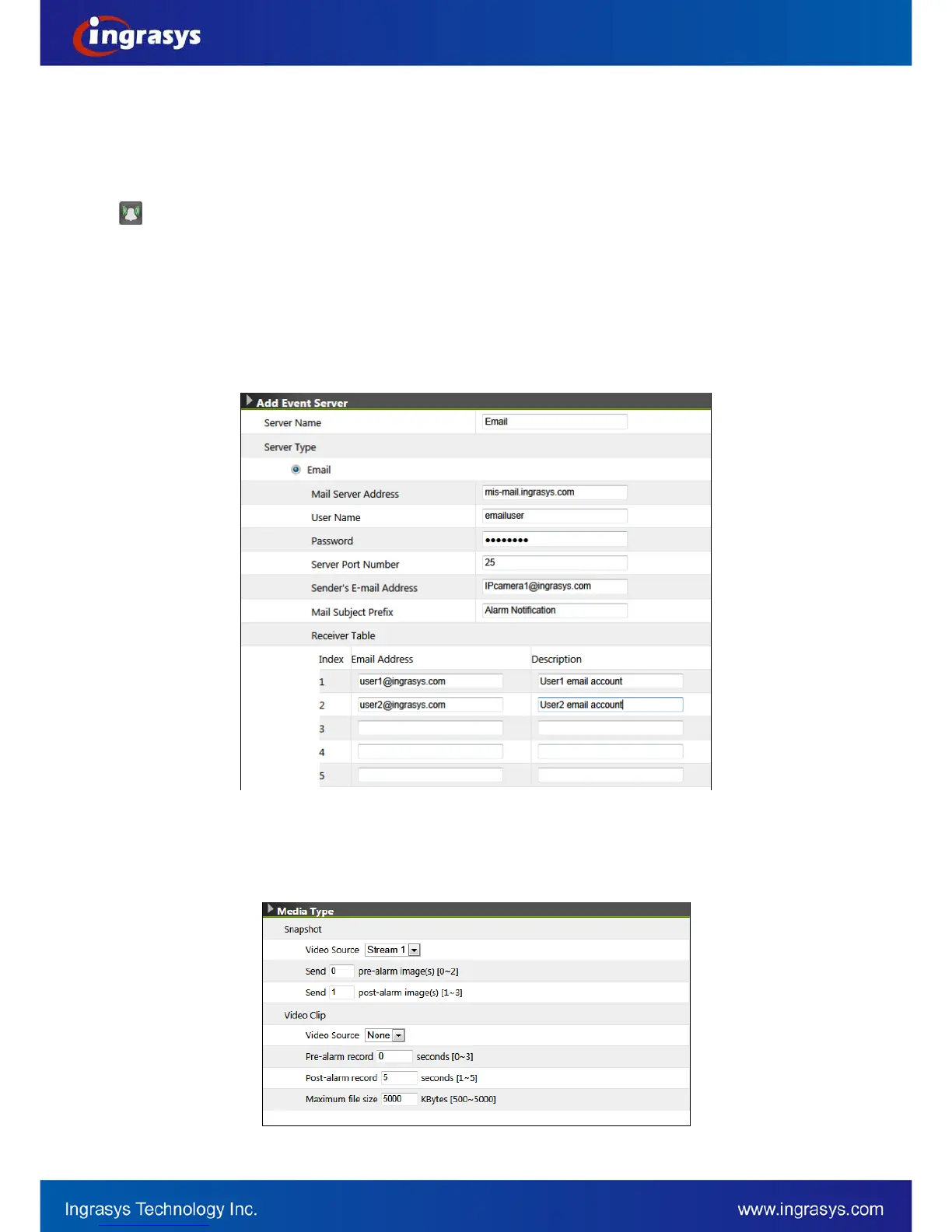 on the web page. It will send email to the specified email accounts with the captured pictures.