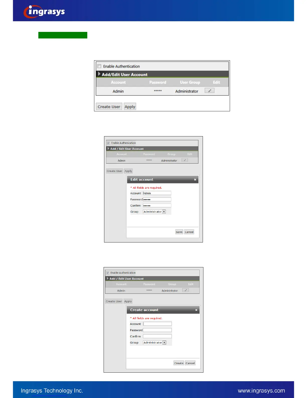 in this page. The number of user accounts can be created is up to 8.