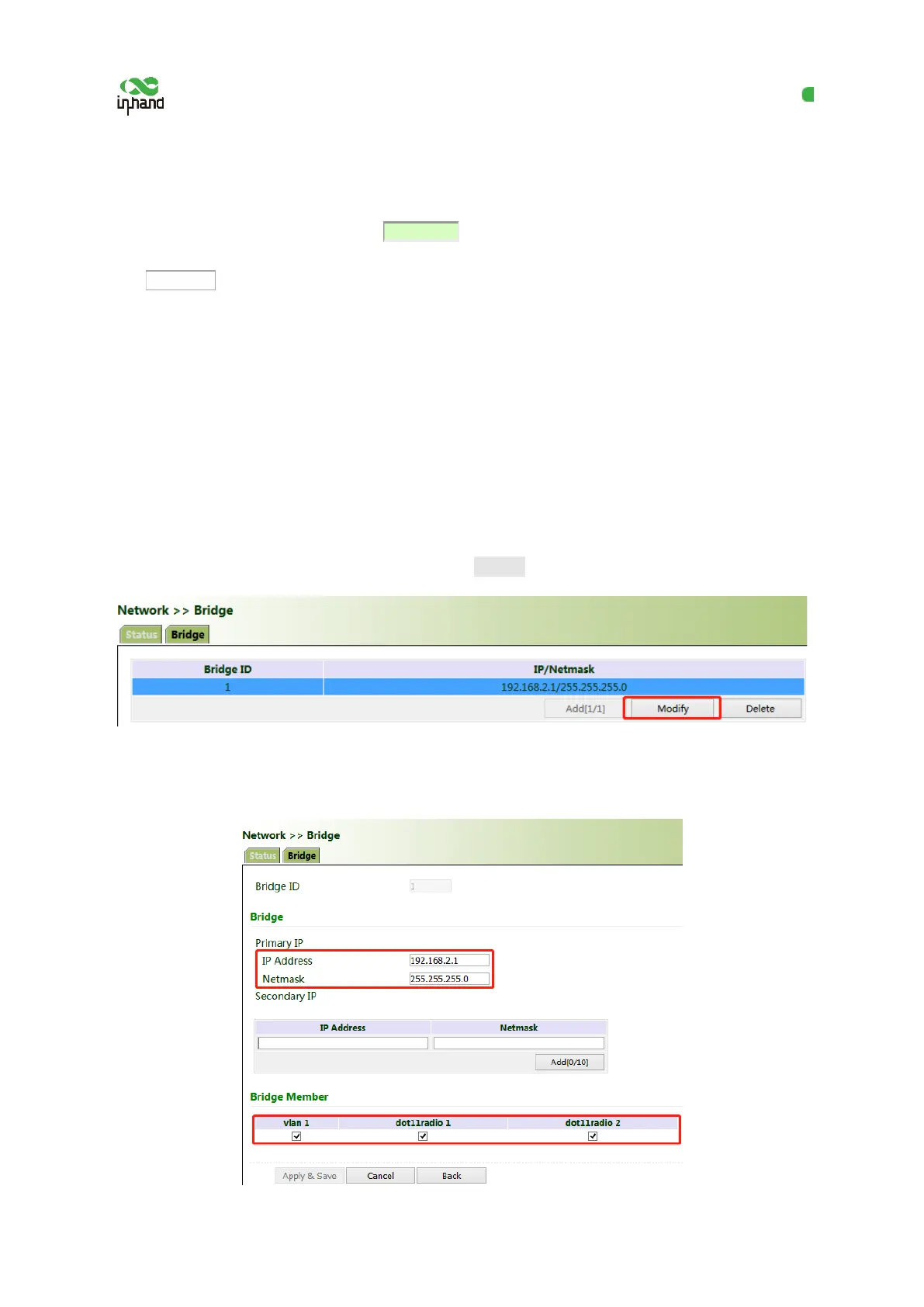 2. Modify the IP address of the bridge port or bridge members. Among the bridge members,