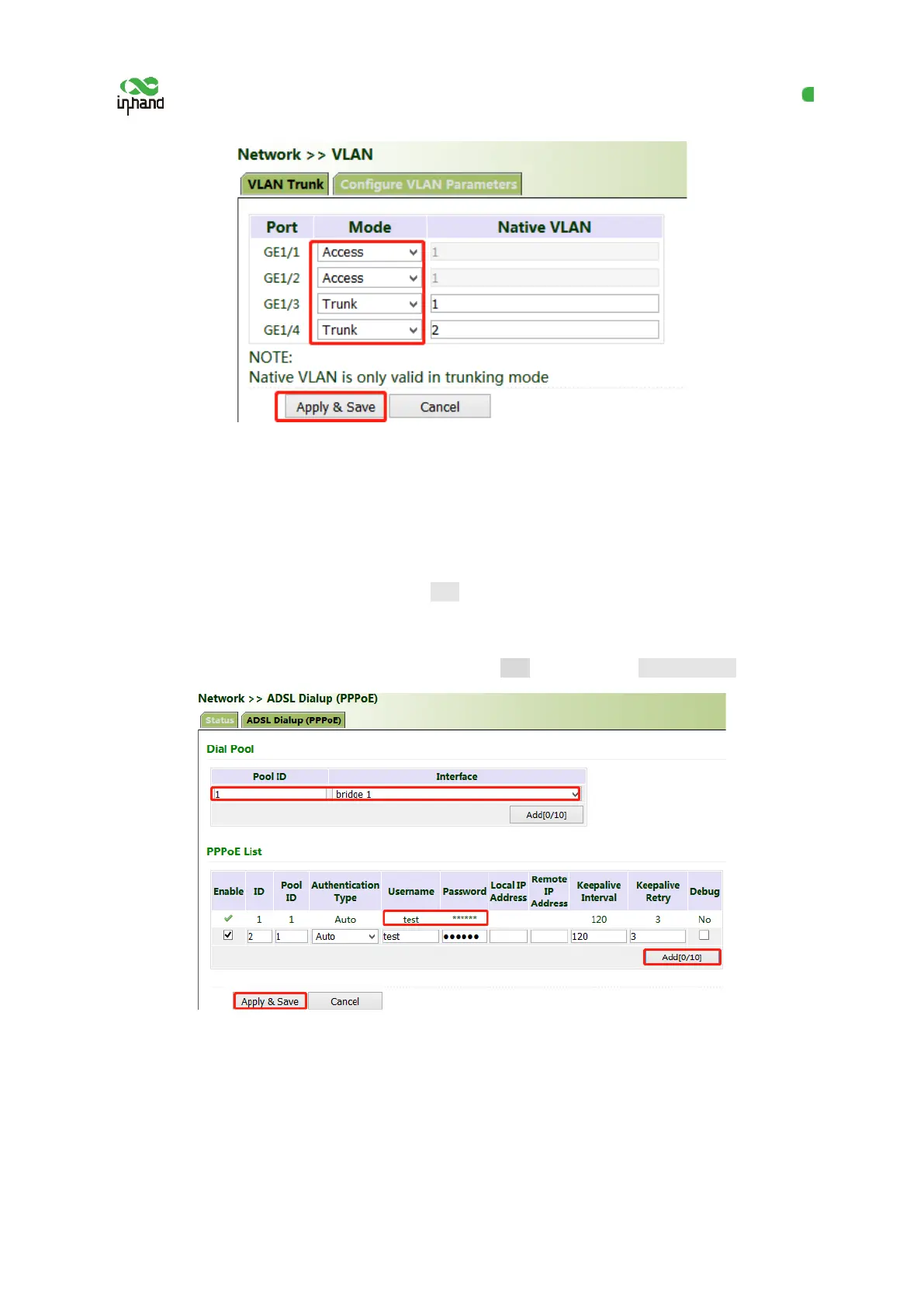 1. Click "Network > > ADSL Dialup (PPPoE)", select the VG710 interface for connecting to the