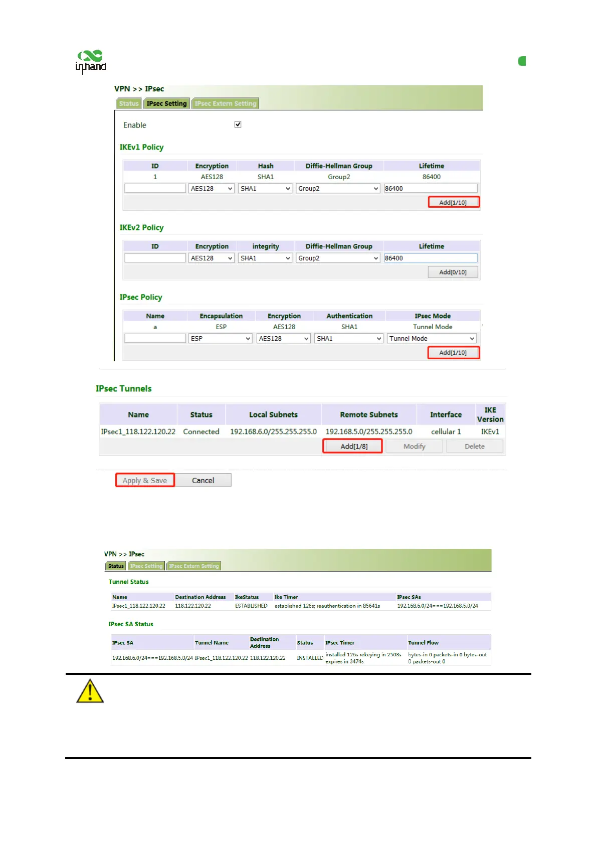 2. Access the IPsec status page. The IPsec VPN is established successfully if the page is shown as
