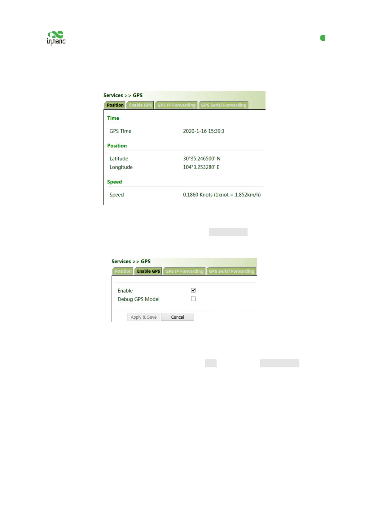 Click "Services >> Enable GPS", check "Enable", and click Apply & Save. By default, GPS is enabled
