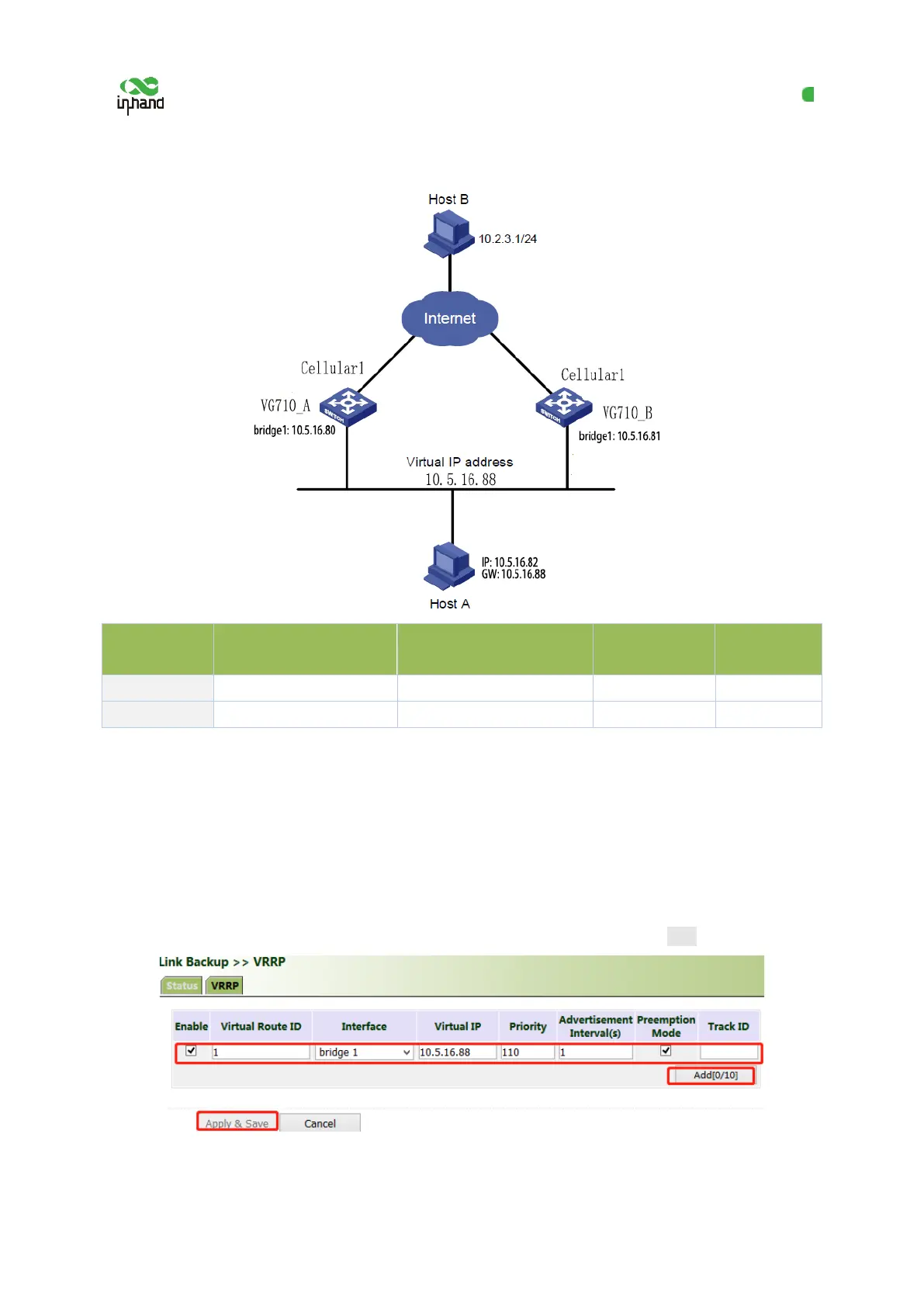 Click "Link Backup >> VRRP", set "Virtual Route ID" as required, select the gateway interface of