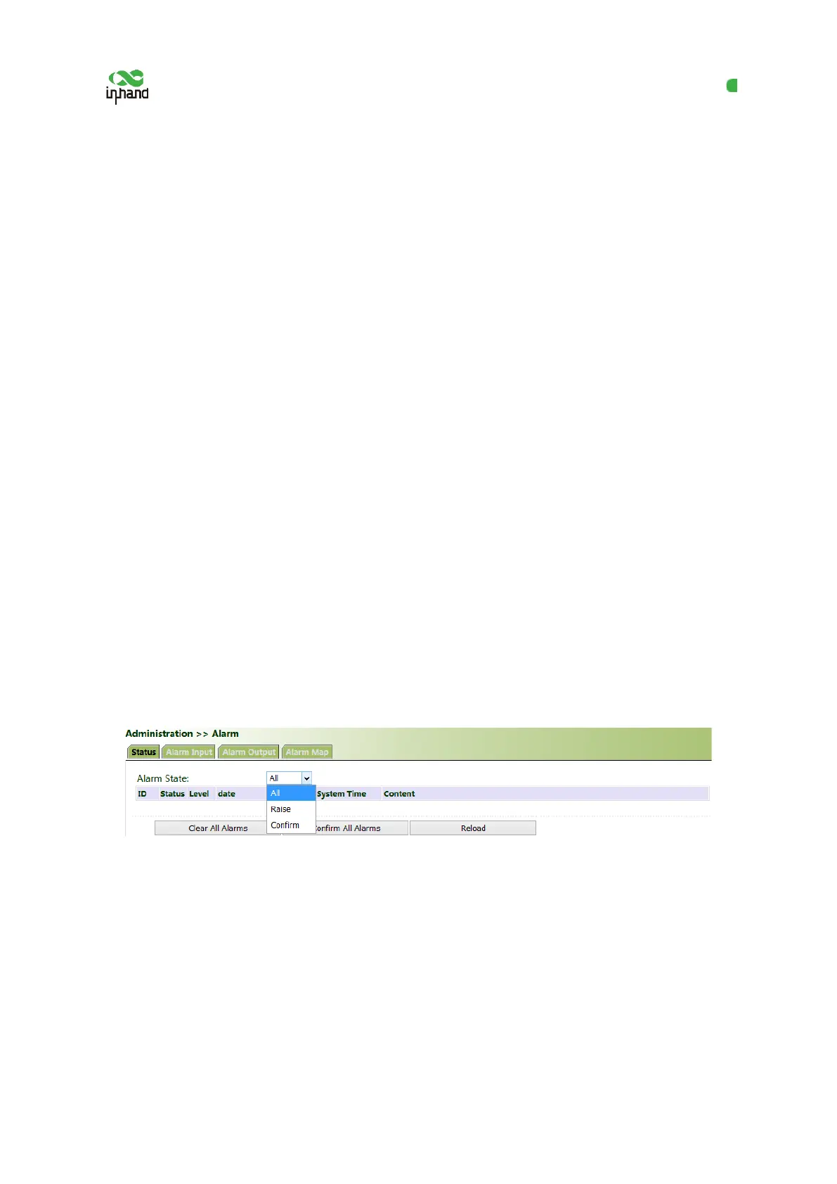 ● Raise: indicates that the alarm has been generated but not been confirmed.