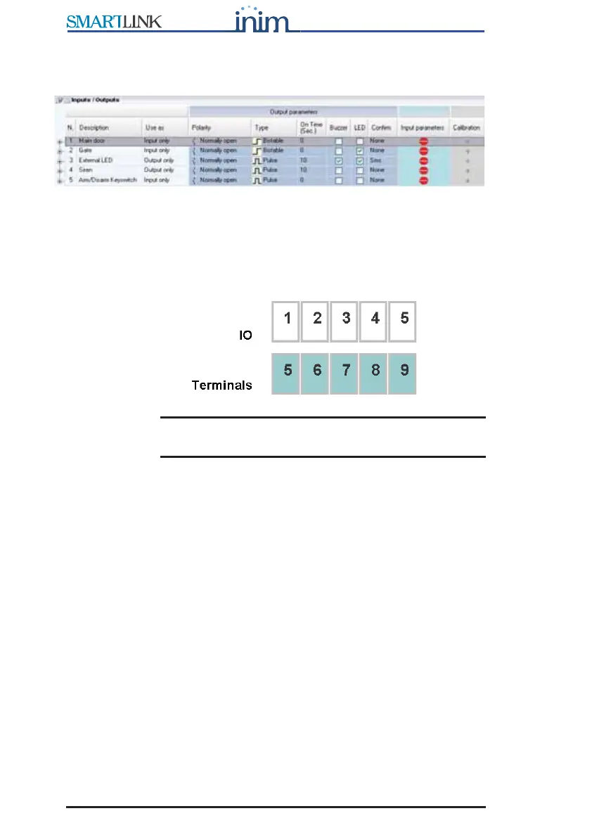 The IN&OUT terminal board provides 5 terminals (5 to 9), each of which can