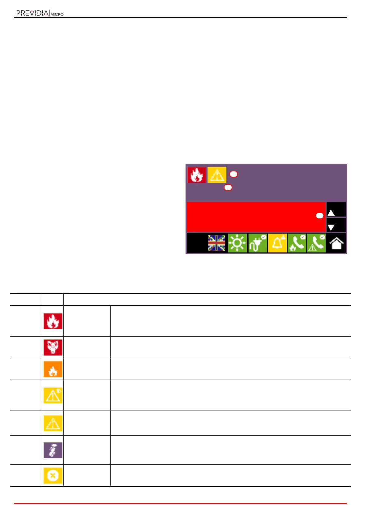 When an alarm occurs, the section below the event buttons [B] shows the pre-alarm time