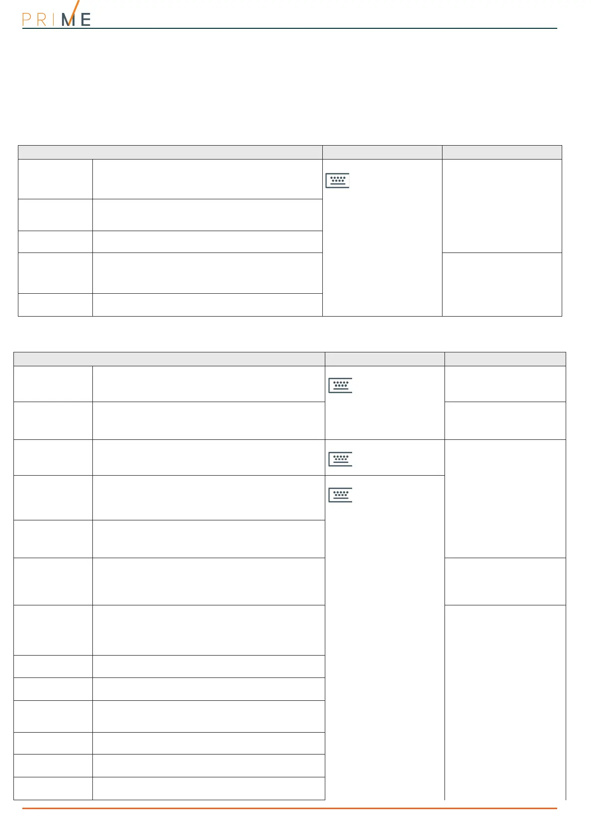 Prime system keypads also provide a section where you can configure the keypad parameters,