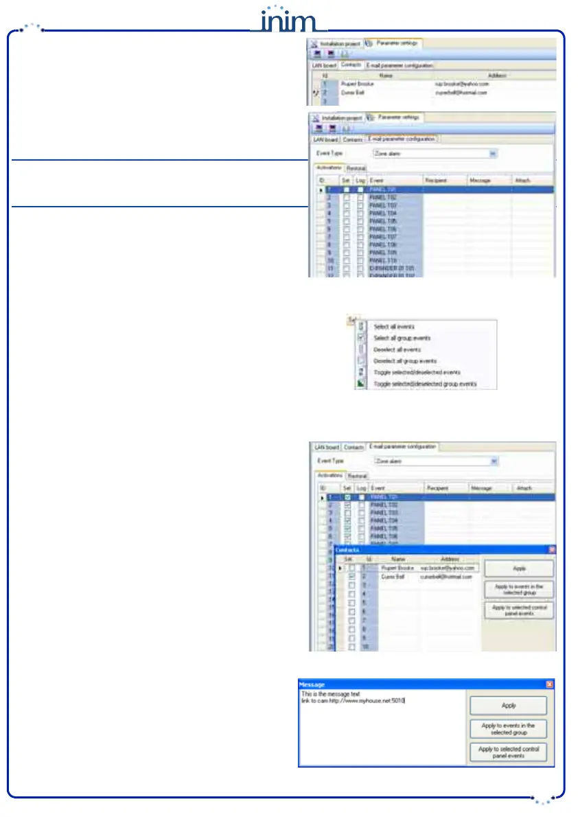 • Recipient - double-click on the box which corresponds to the desired event to access the e-mail contacts
