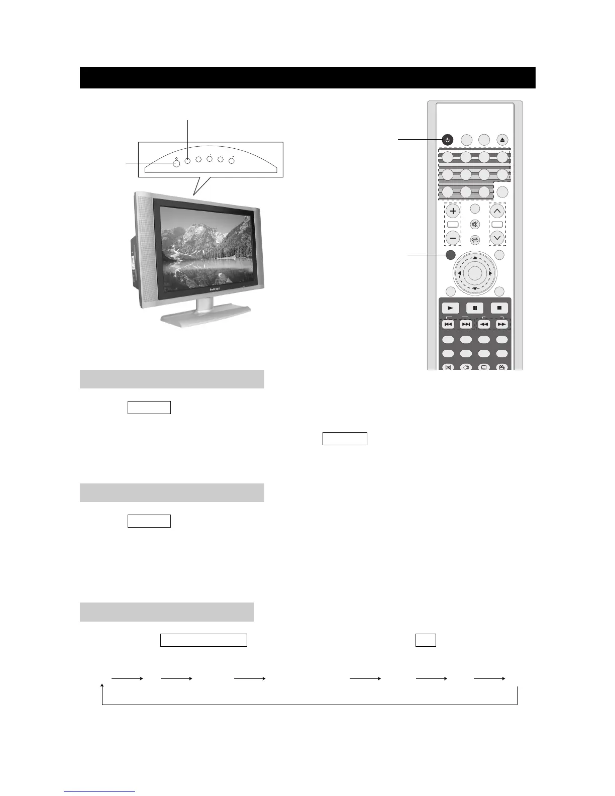By pressing the TV/DVD/AUX/PC on the TV set and confirming by the OK button, you can