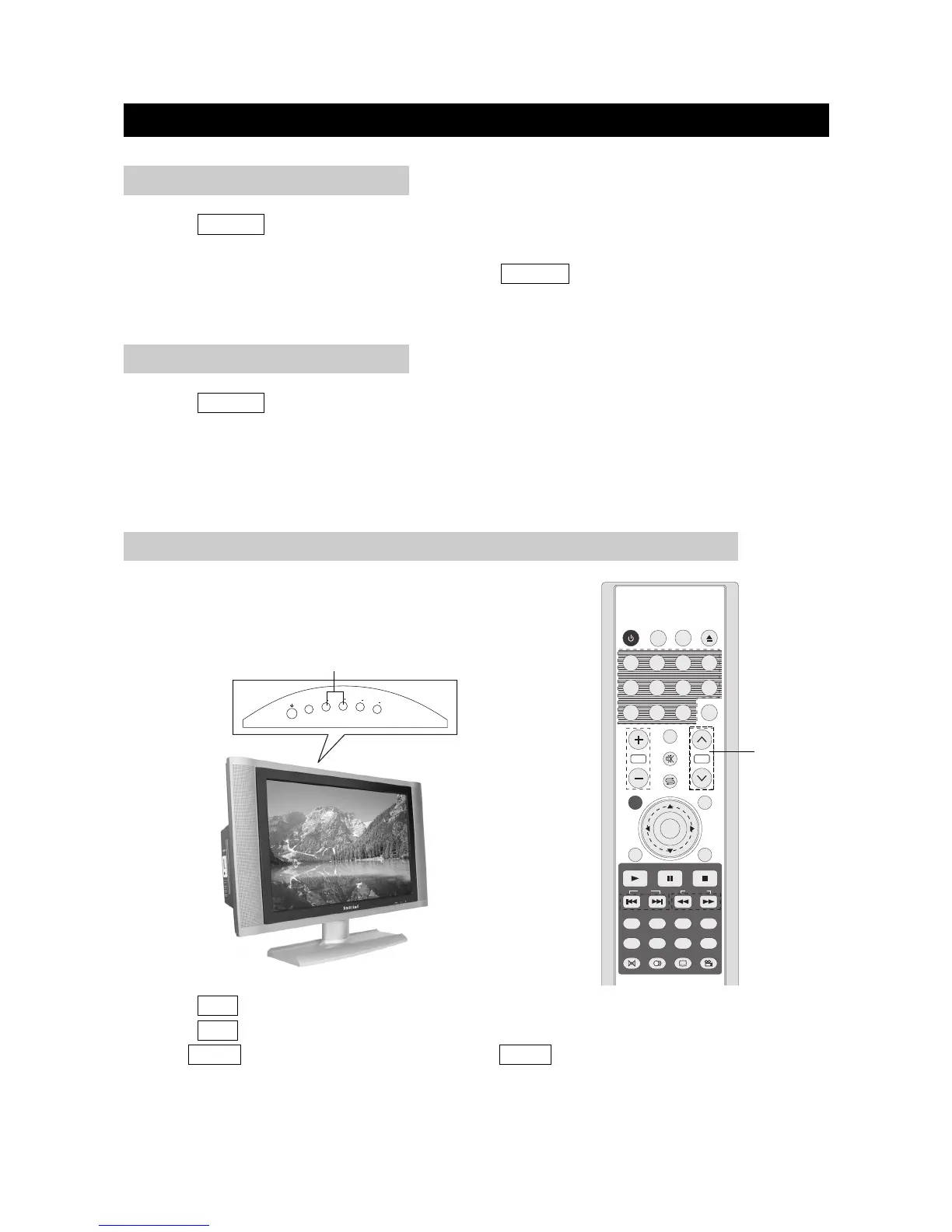 1. Press POWER button on the front panel to turn on the TV set. The POWER indicator