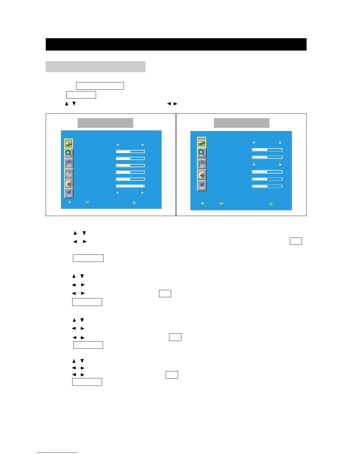 Press TV MENU to enter LCD menu.