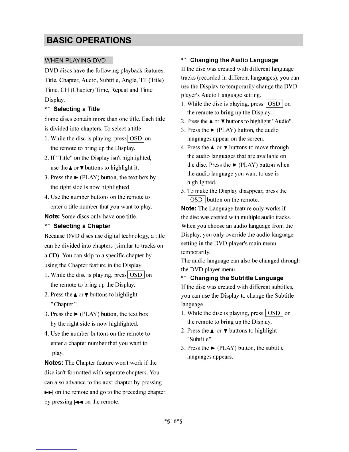 Initial DVD-5820 - Basic Operations - DVD Navigation