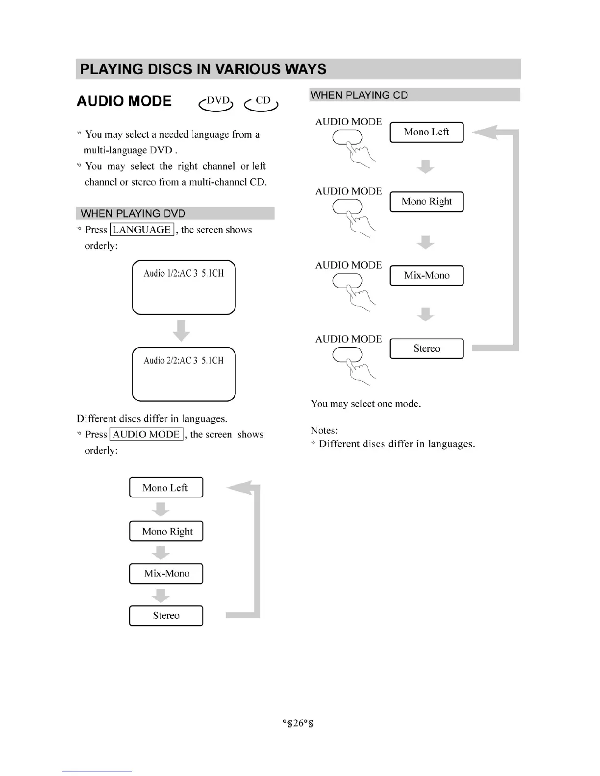 Initial DVD-5820 - Playing Discs in Various Ways; Audio Mode; When Playing DVD; When Playing CD