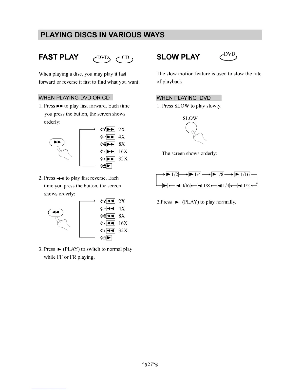 Initial DVD-5820 - Fast Play; Slow Play; When Playing DVD or CD