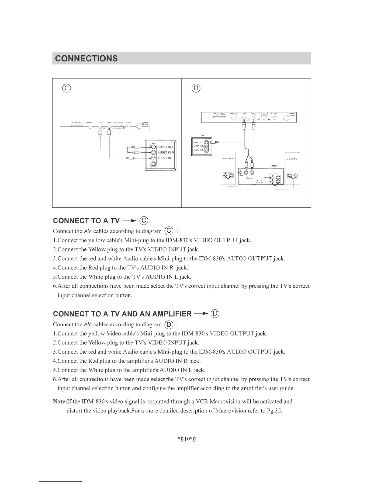 Initial IDM-830 - Connect to a TV; Connect to TV and Amplifier