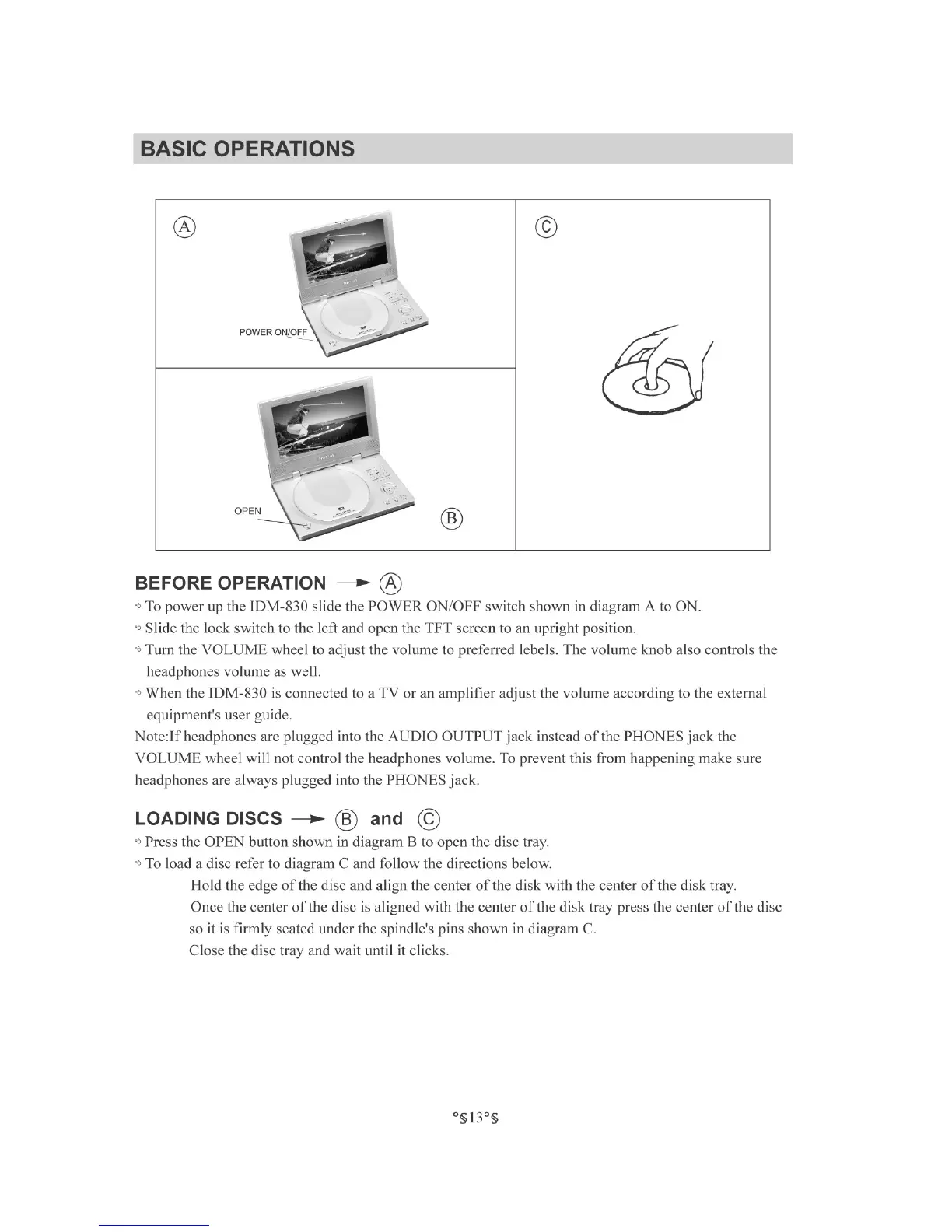 Initial IDM-830 - Basic Operations; Before Operation; Loading Discs