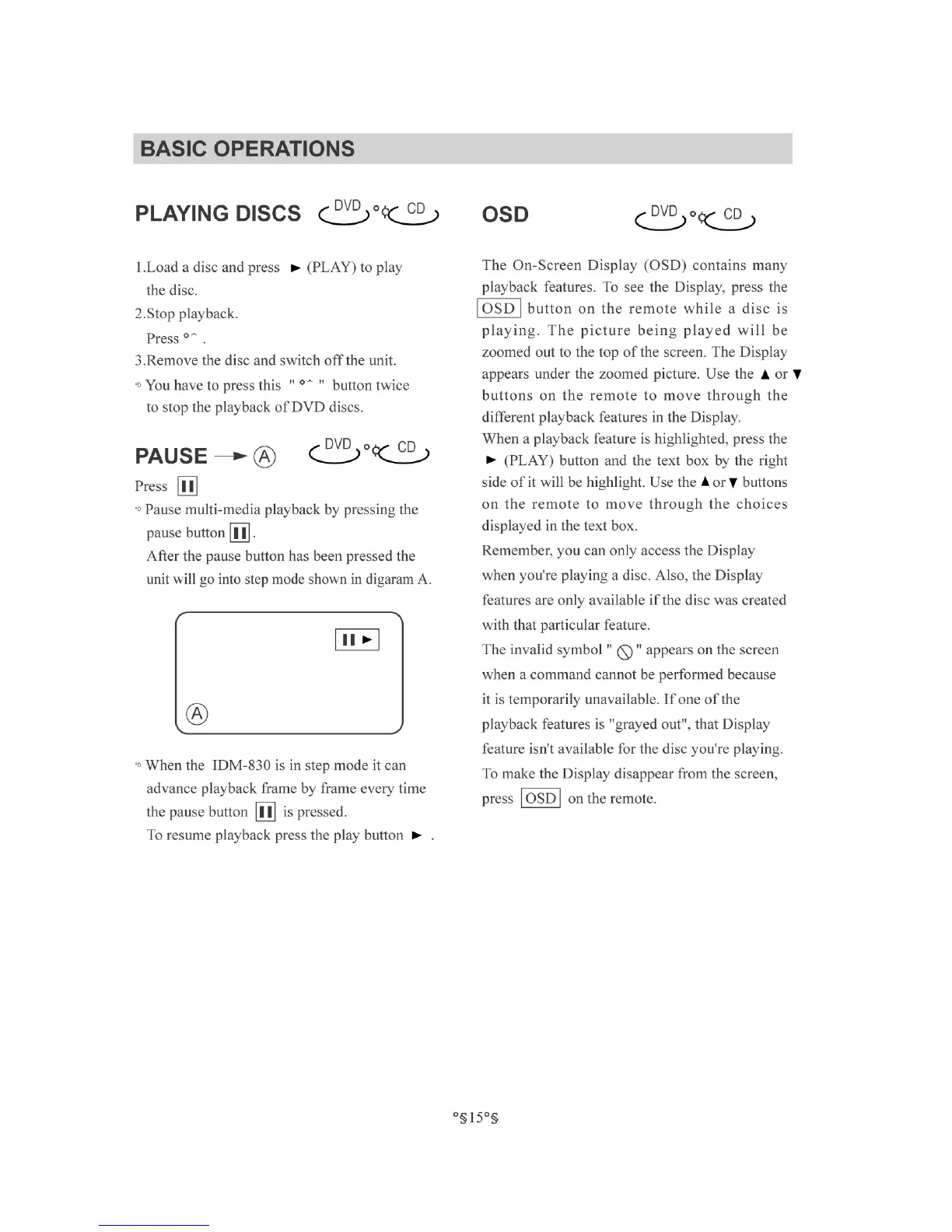 Initial IDM-830 - Playing Discs; On-Screen Display (OSD)