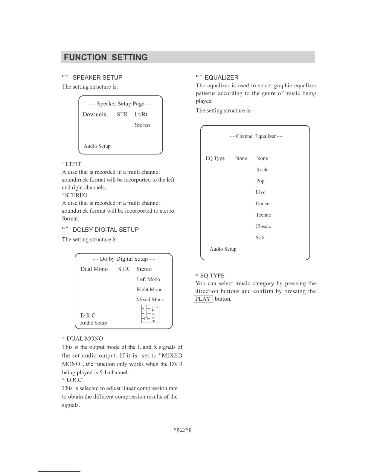 Initial IDM-830 - Speaker Setup; Equalizer Settings; Dolby Digital Setup