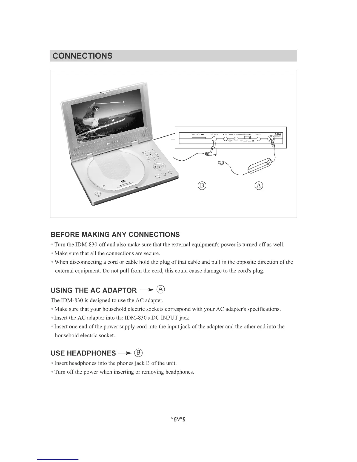 Initial IDM-830 - Connections Guide; Before Making Connections; Using the AC Adaptor; Using Headphones