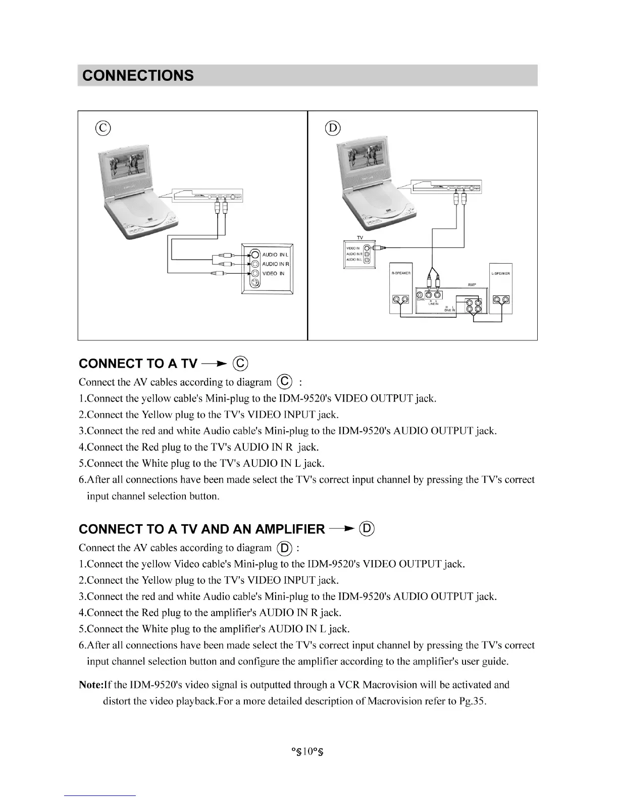Initial IDM-9520 - Connect to a TV; Connect to a TV and an Amplifier