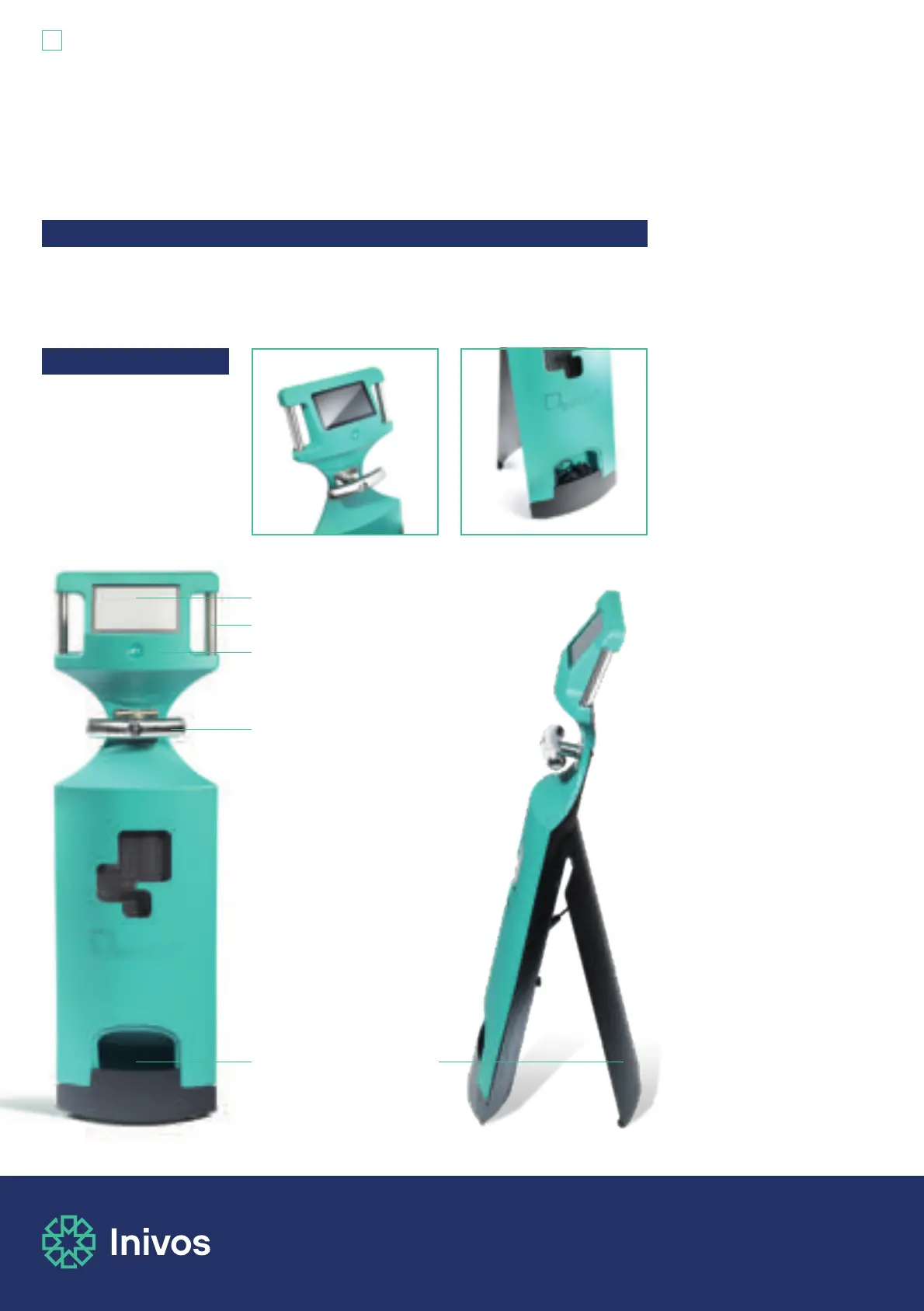 the treatment space; a flip out support stand at the rear; a touch screen monitor; a scan point for