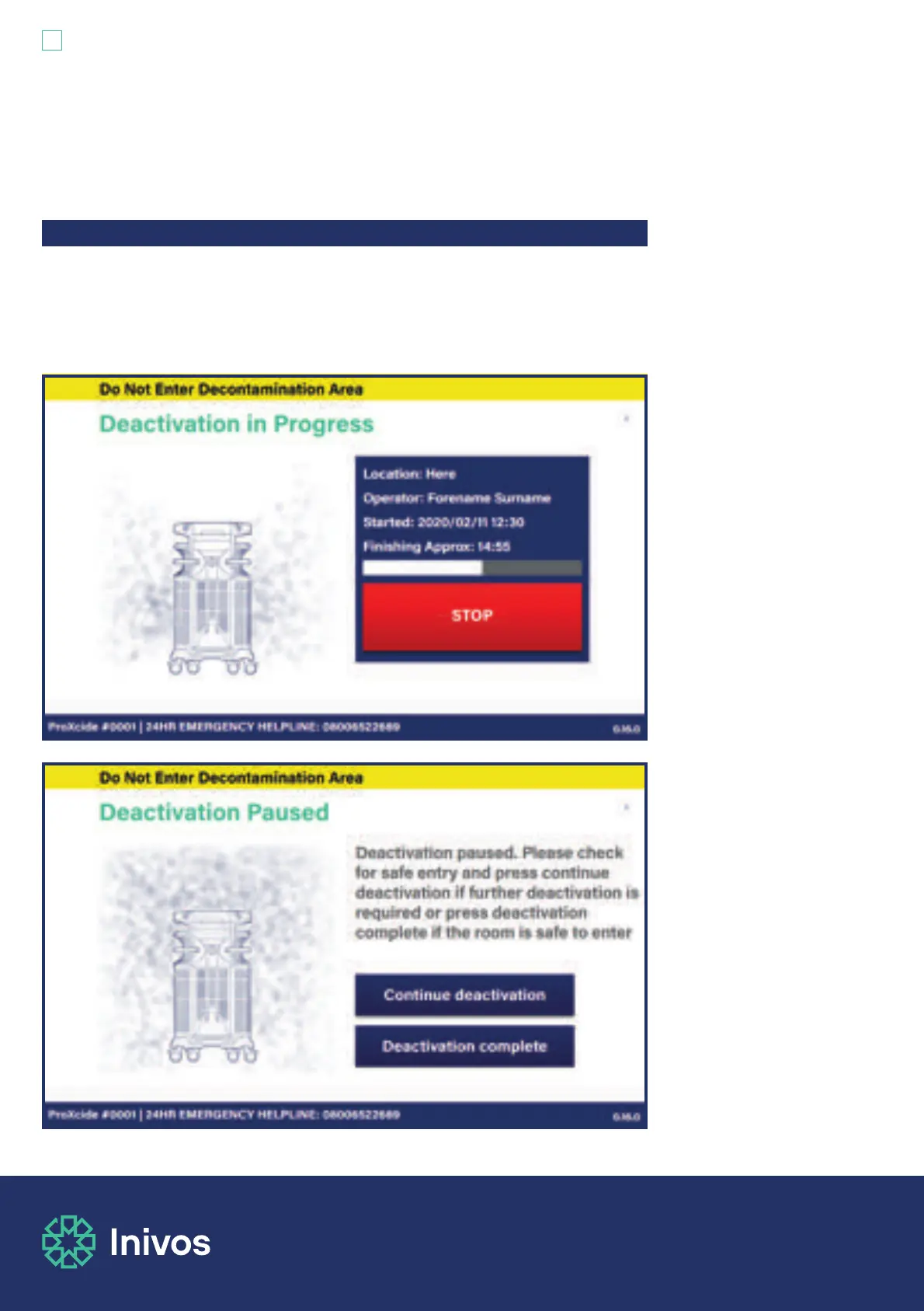 during the process. The emergency stop button can be used at any time during the decontamination