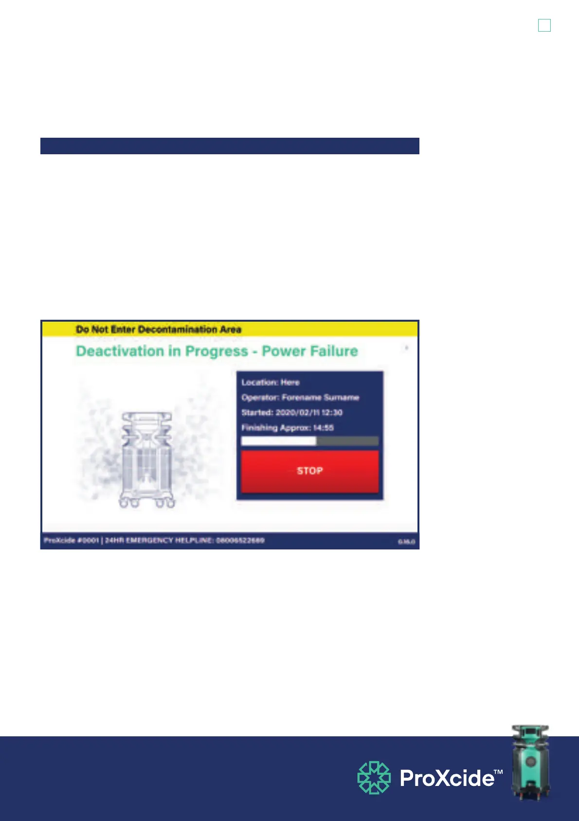 process monitor and the main unit, the ProXcide™ main unit will automatically go into deactivation