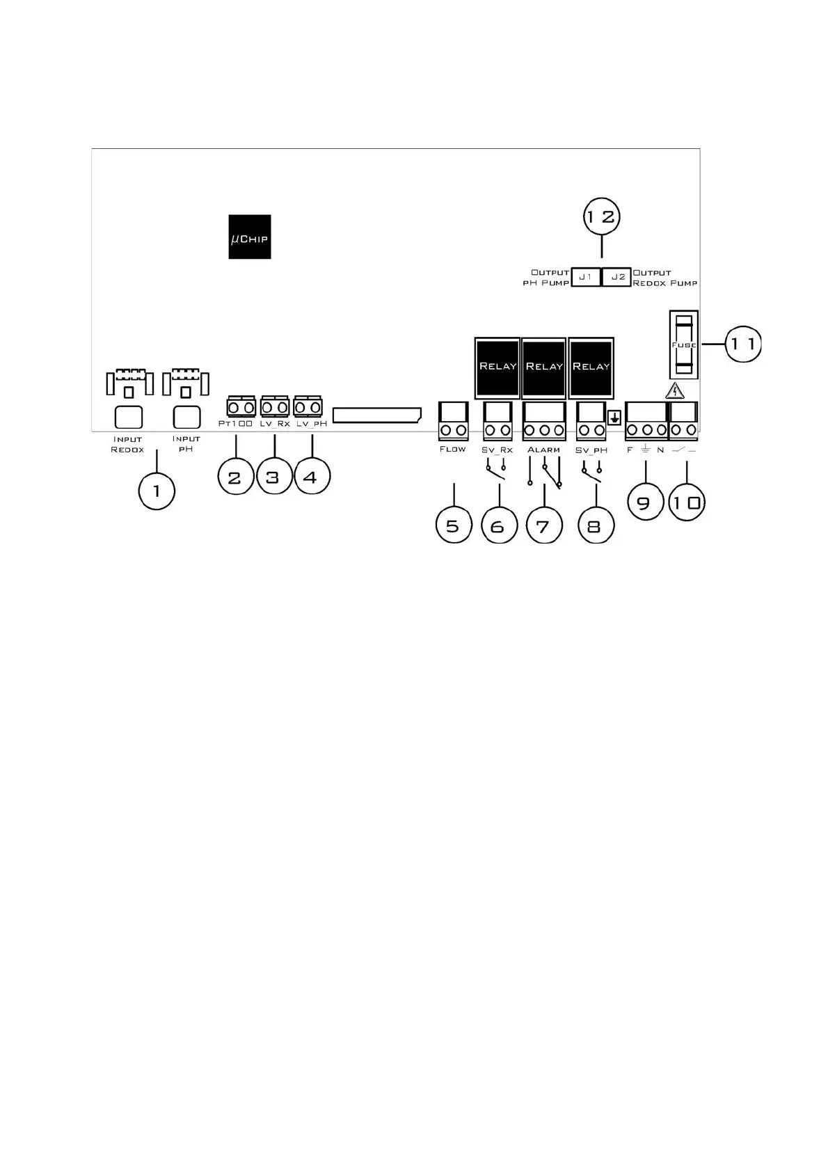 12) Выход насоса pH (J1) и насоса Redox (J2)