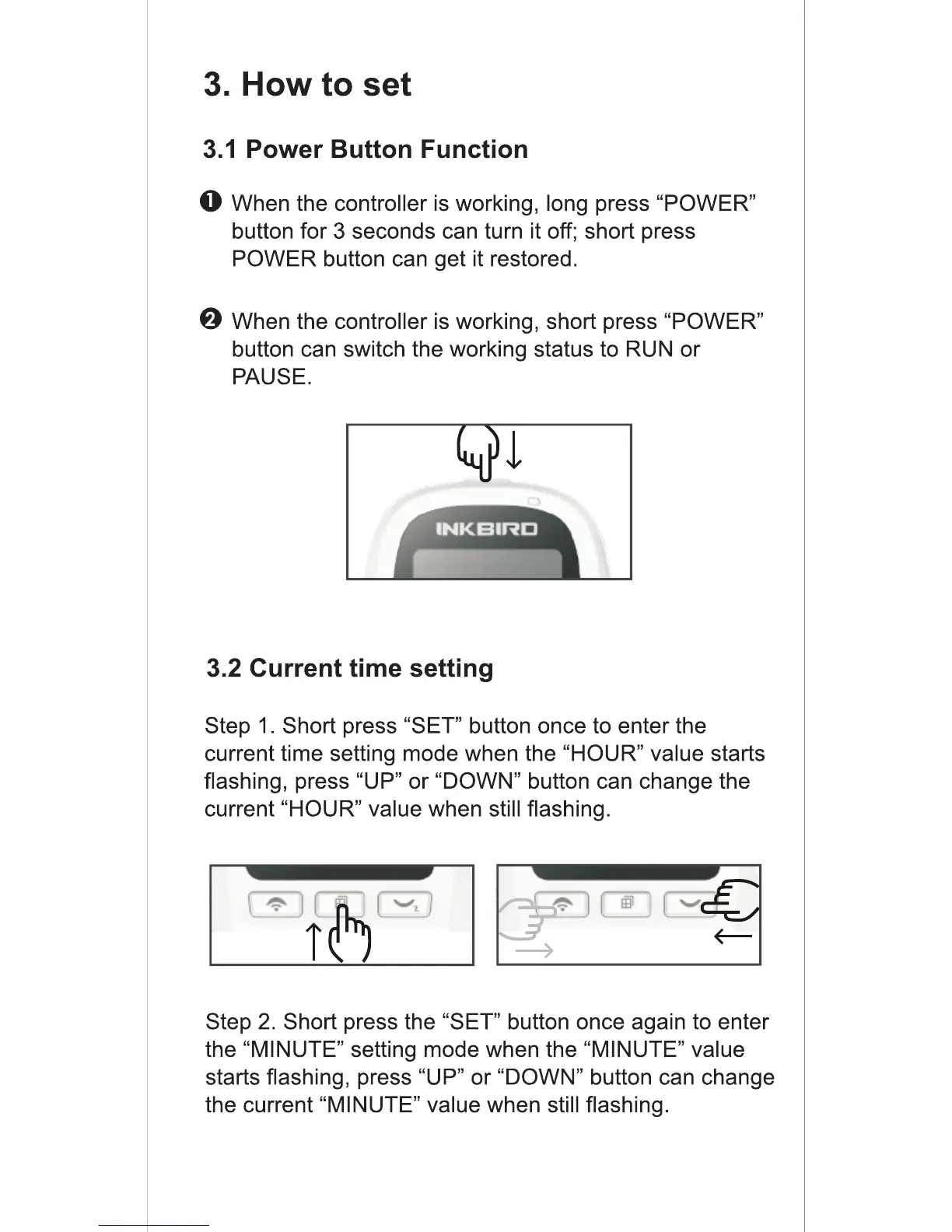 Inkbird C206T - Device Setup and Configuration; Power Button Operations; Setting the Current Time