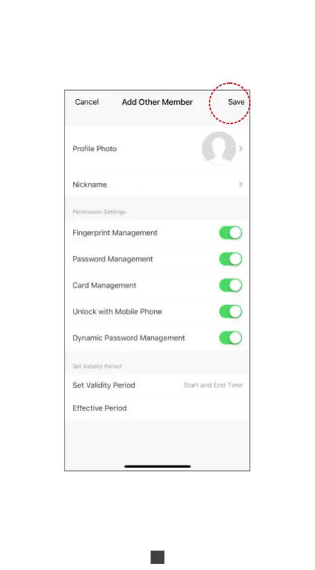Note: After a battery change or power outage, other members cannot unlock