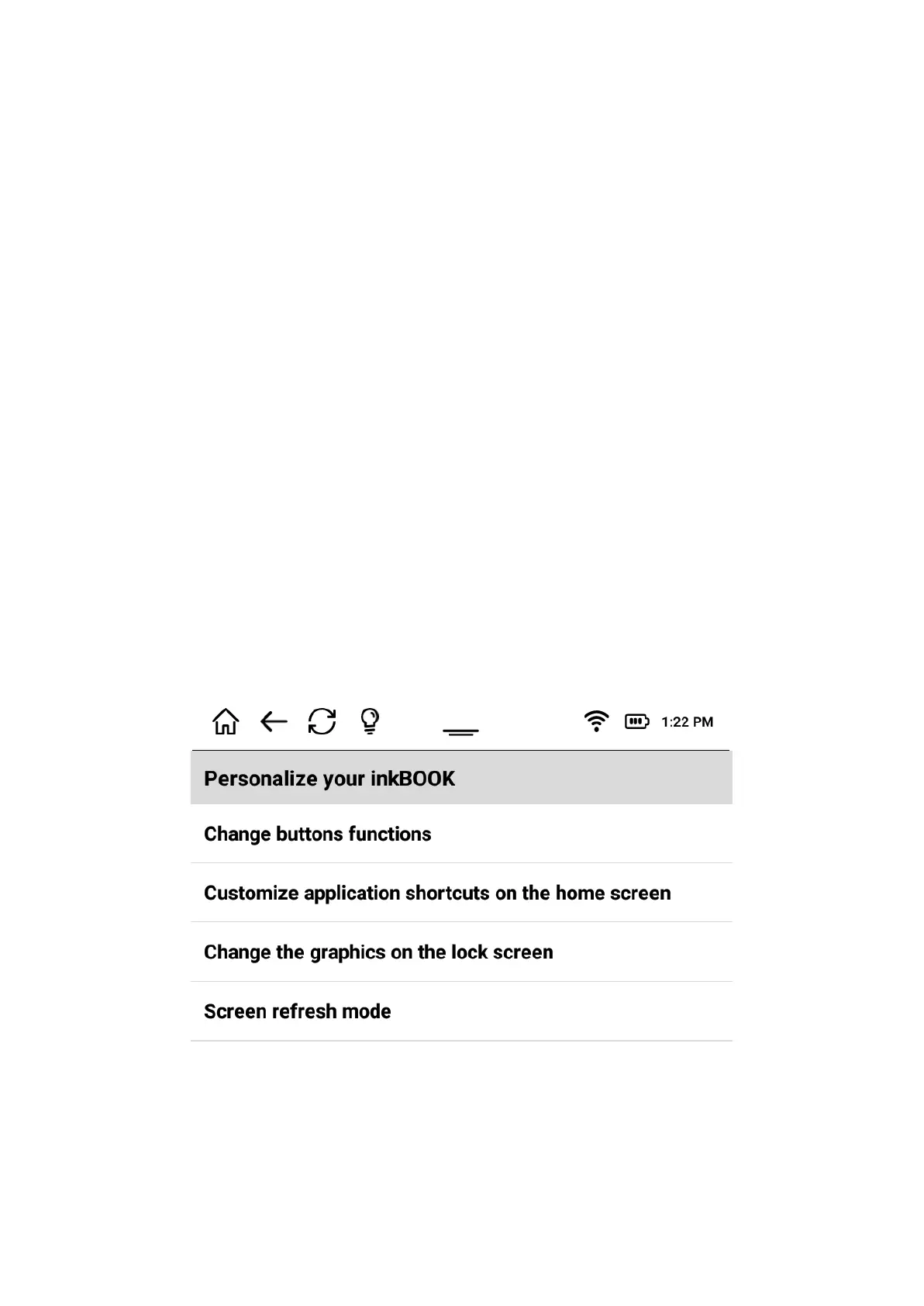 INKBOOK PERSONALISATION SETTINGS