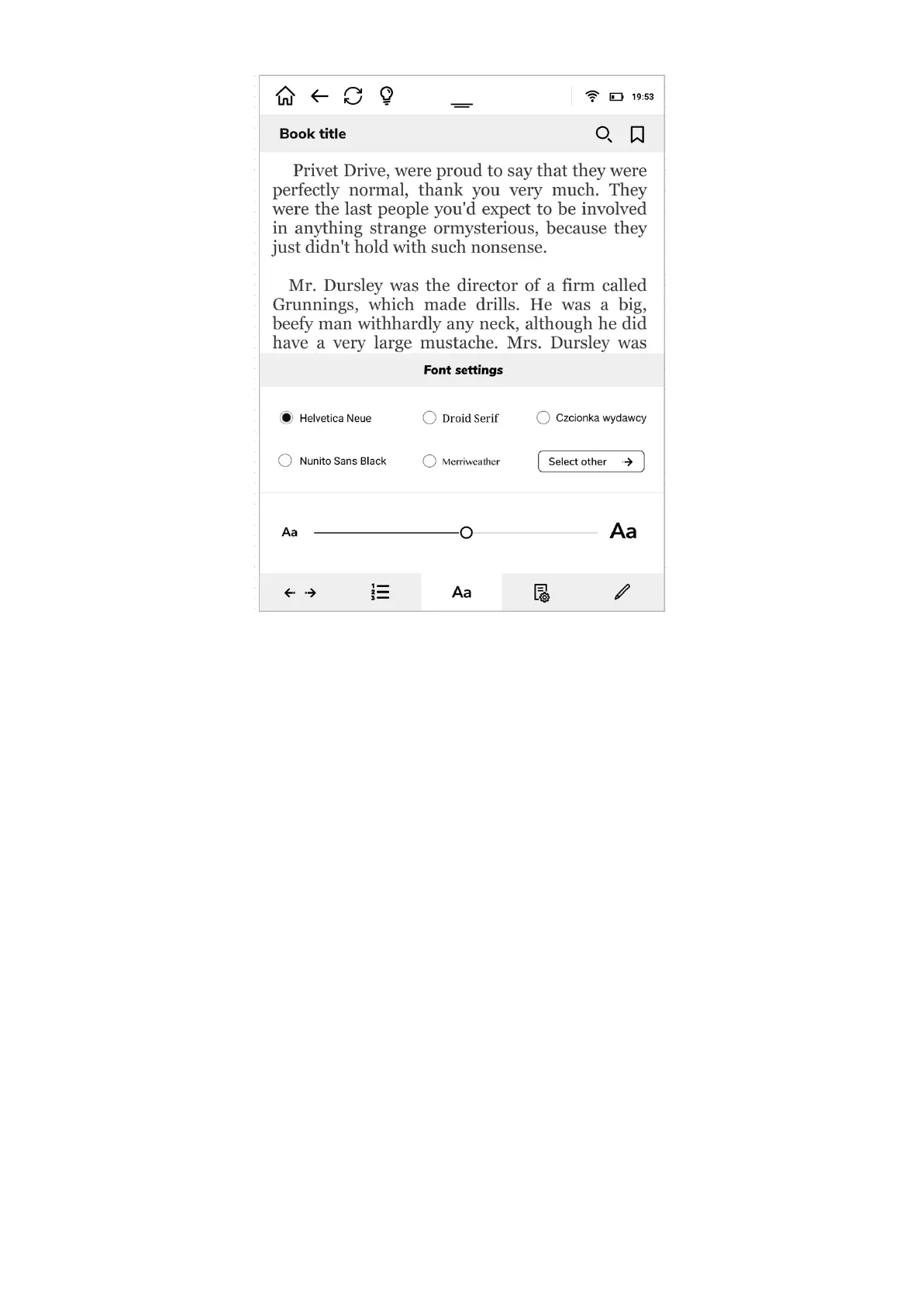 background and font color. You can choose as in printed book - black letters on white pages