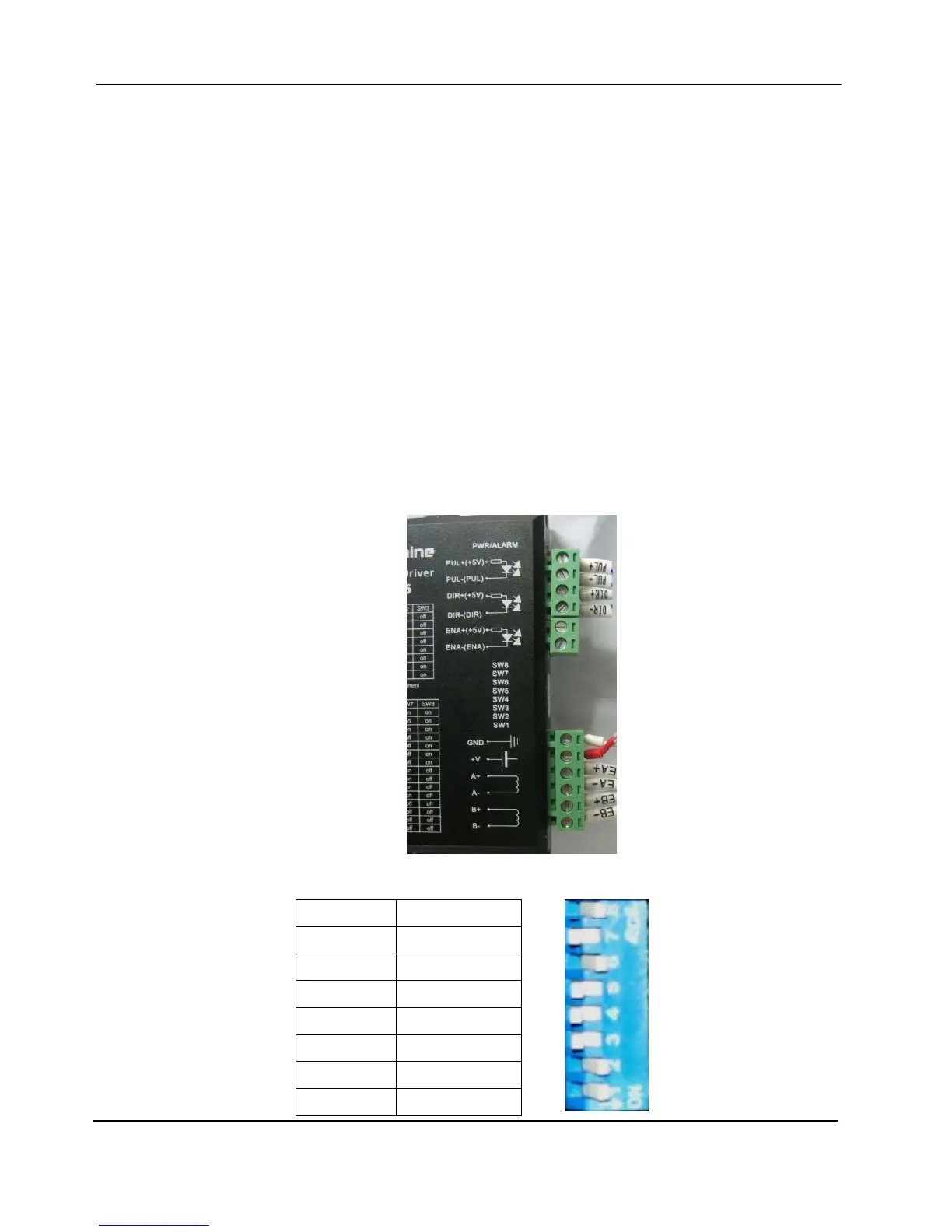 1) Two connectors are plugged on the step motor driver. The signal cables (PUL+, PUL-, DIR+ and DIR-)