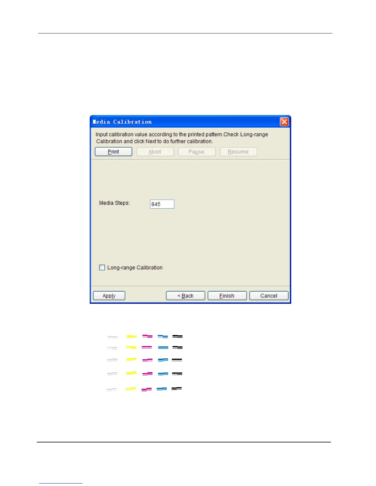3. The dialogue updated will show the present Media Step value after calibration and provides options for