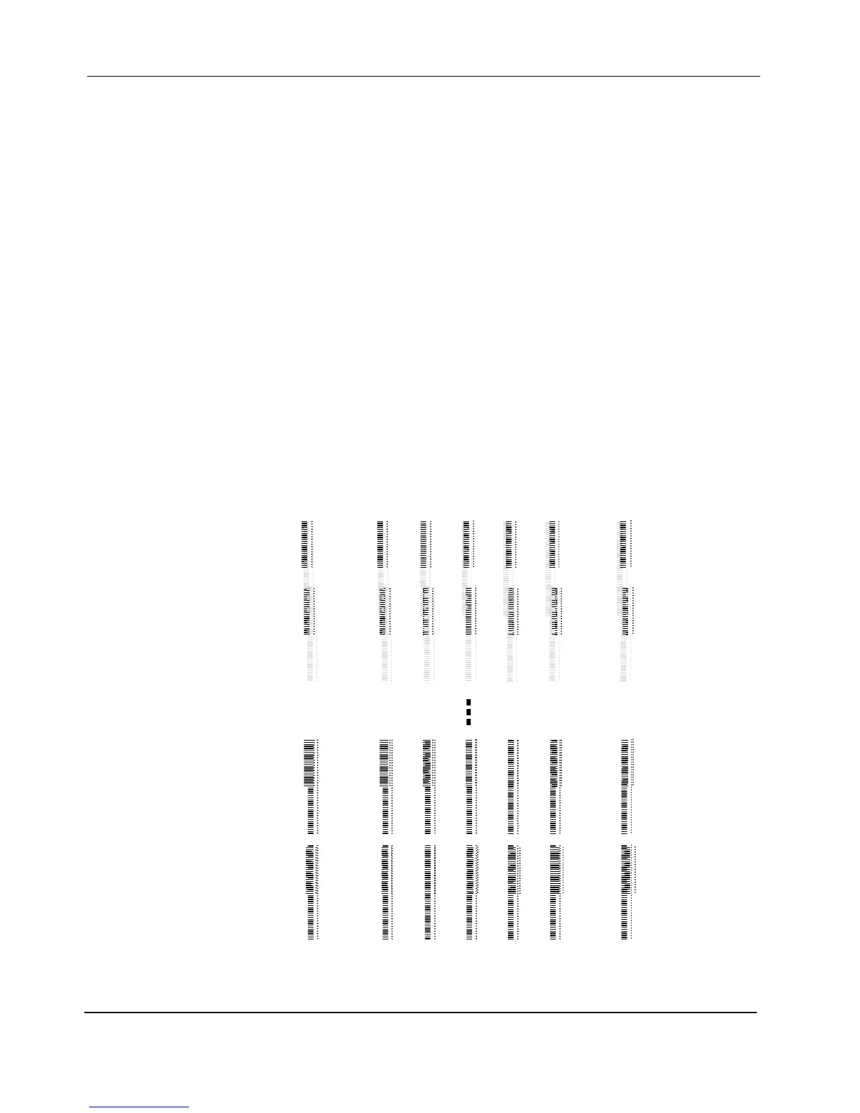 The groups of lines and lines of dots printed by the second and third printheads of each color are
