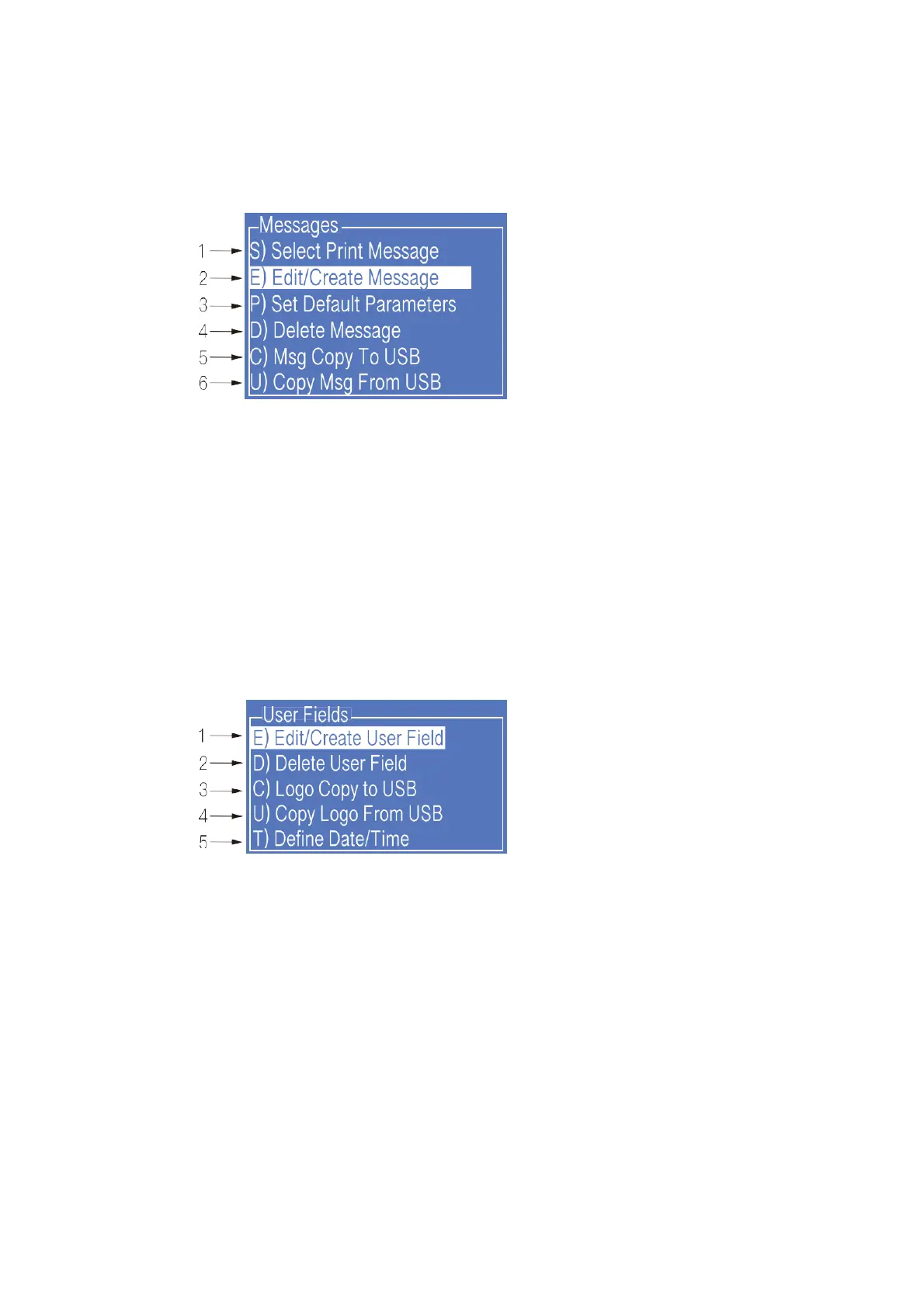 2. Used to delete user fields that have been stored in the printer.