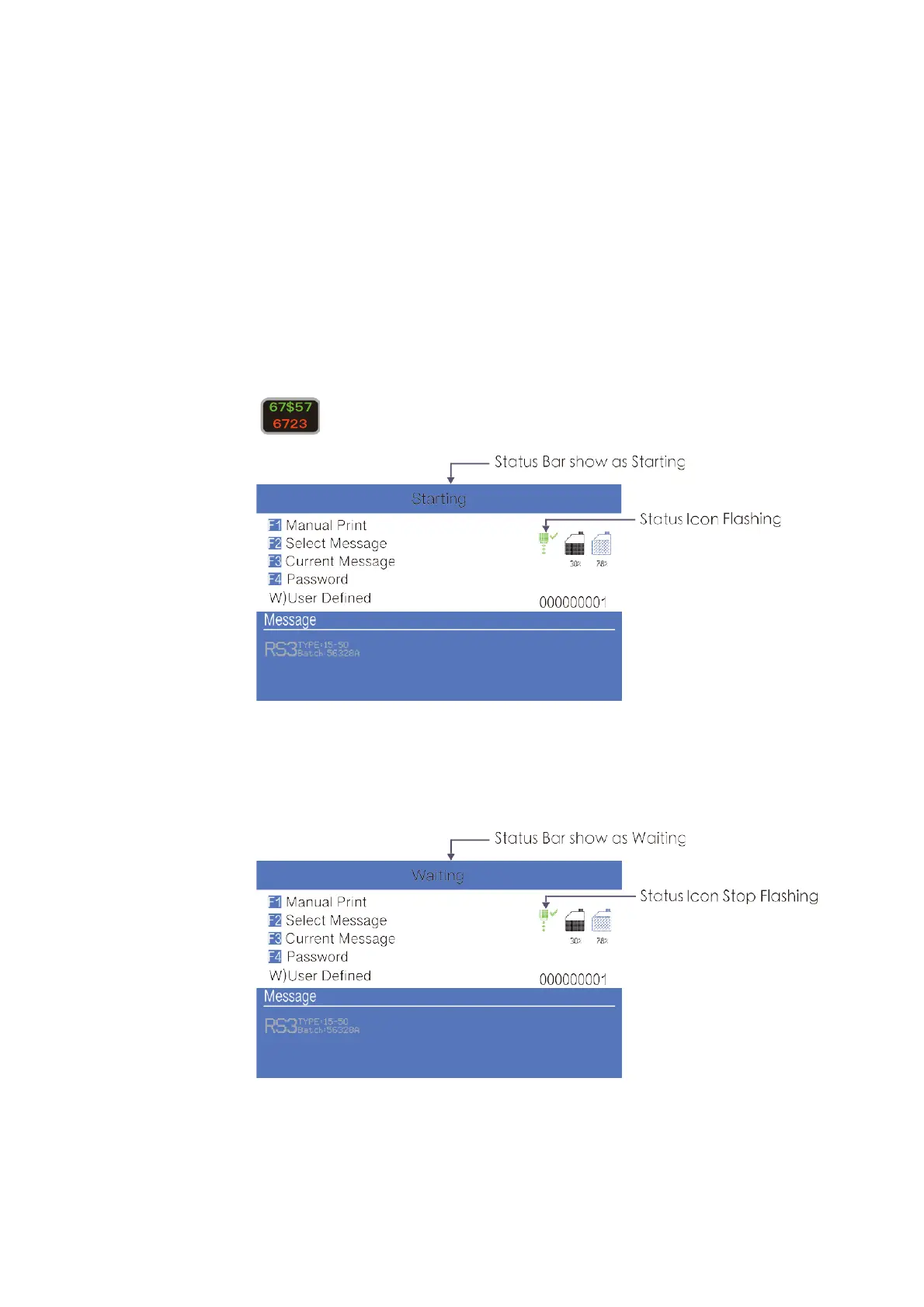 5. Observe the status indicator and the main screen. When the green LED is lit, the