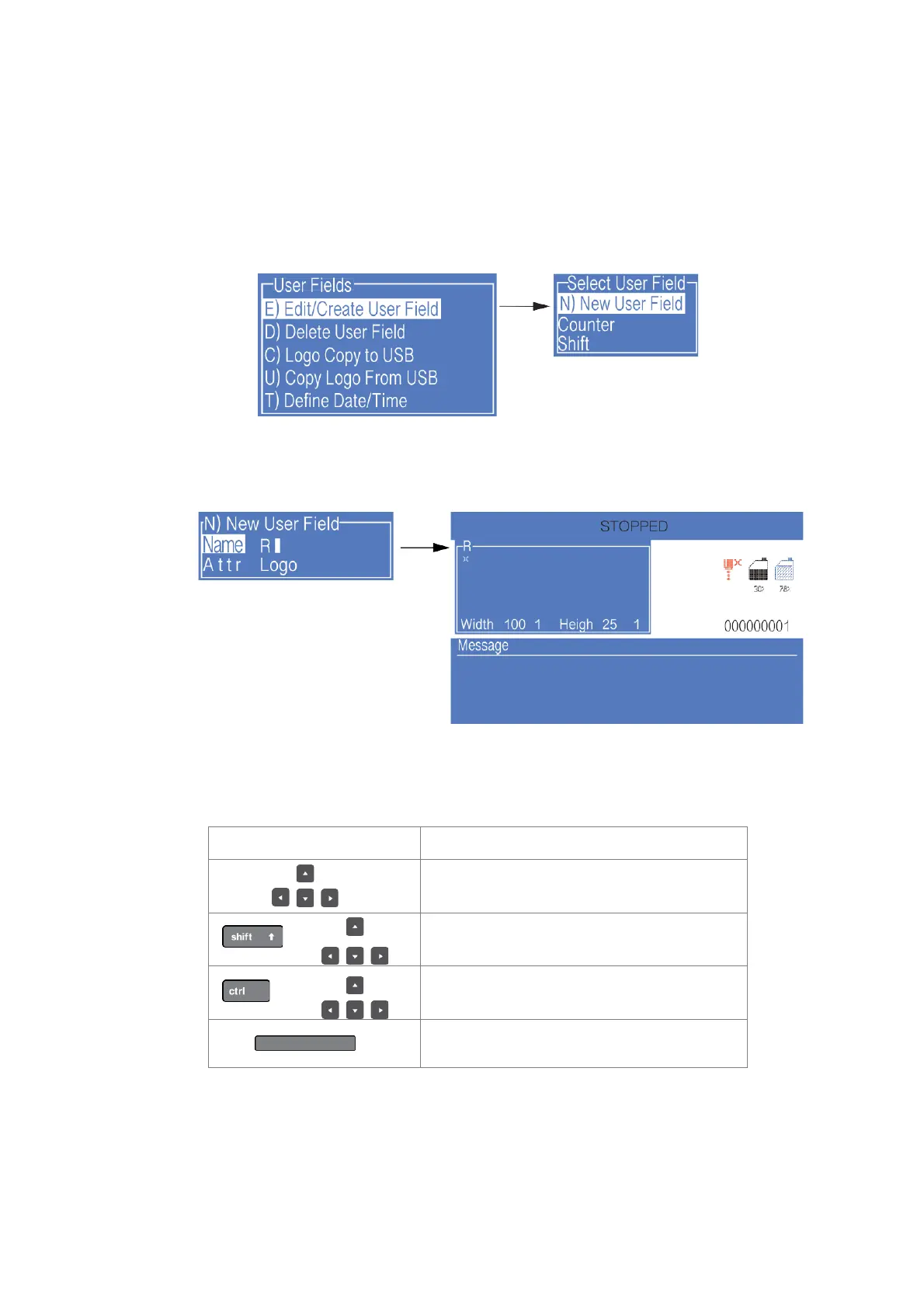 1. Enter the USER FIELD menu,select E) Edit/Create User Field - N) New User Field,